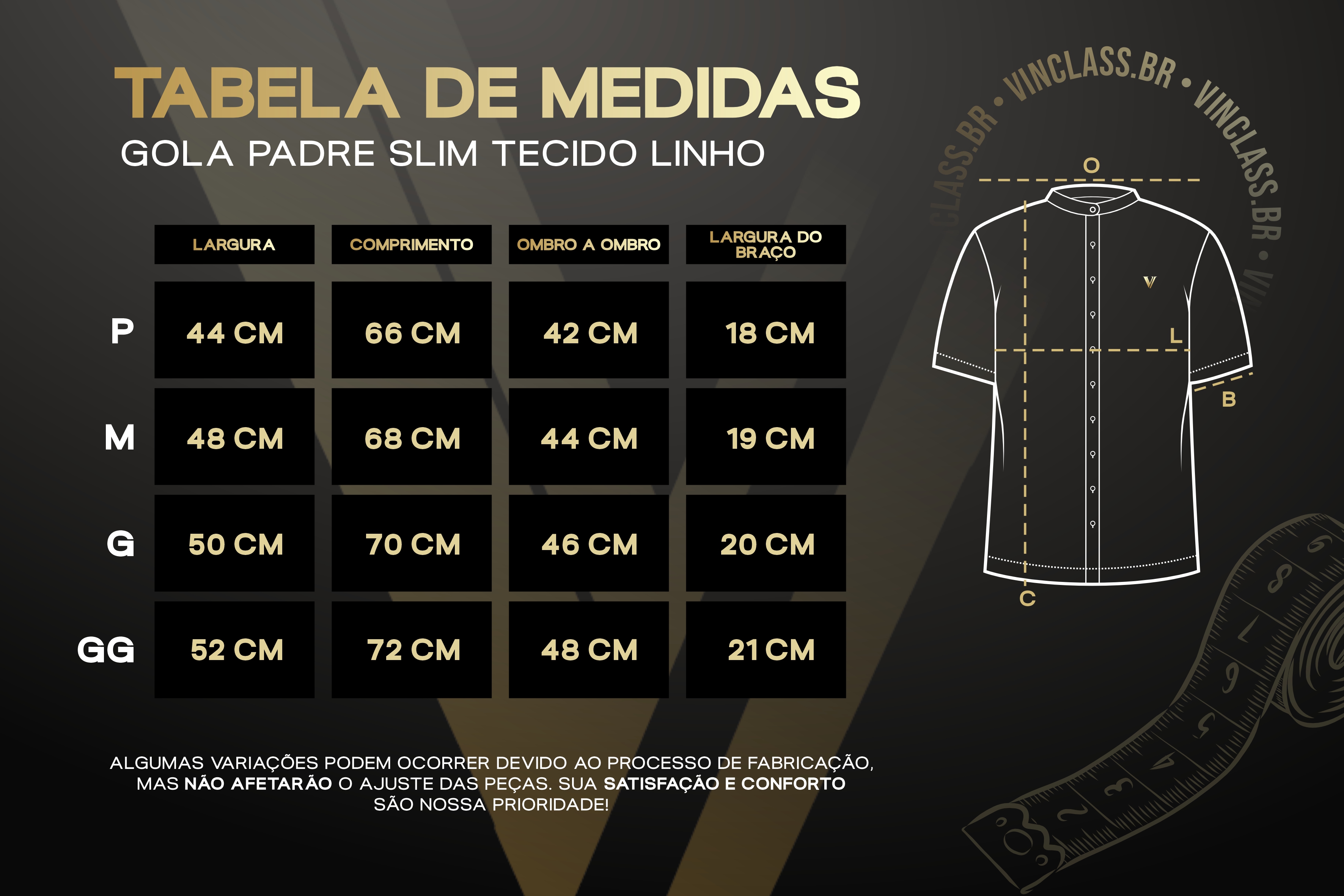 GUIA DE MEDIDAS CAMISA COLARINHO ITALIANO